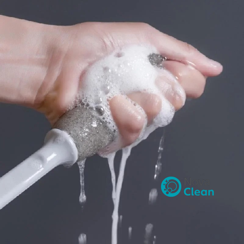 Grâce à son manche allongé et sa tête en mousse souple, elle atteint sans effort les zones les plus difficiles d’accès — du fond des bouteilles jusqu’au bord des verres.