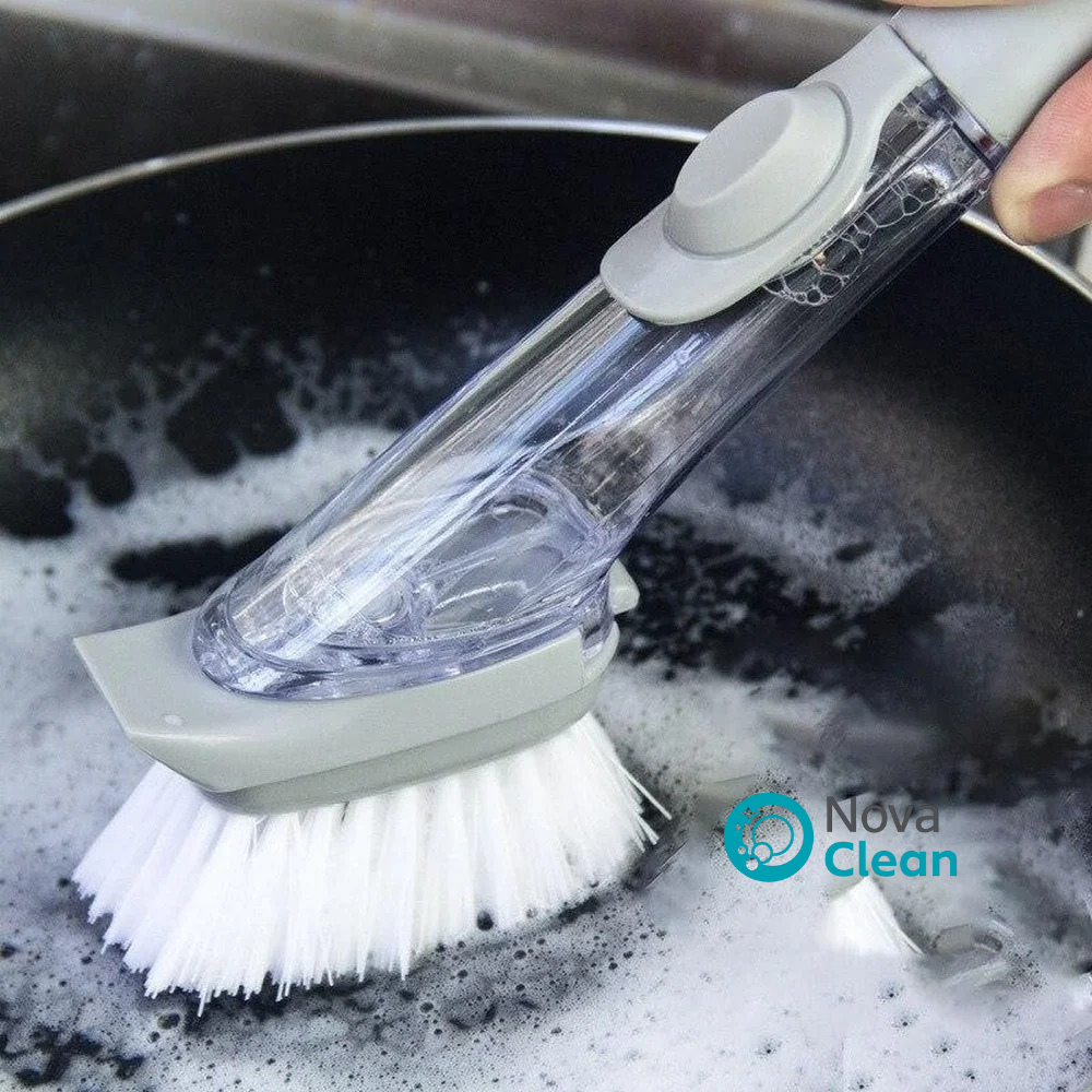 Découvrez DishyHand™, la brosse à main avec réservoir à savon intégré qui rend le nettoyage simple, rapide et efficace. D’un seul geste, elle diffuse la juste dose de savon pour venir à bout de la graisse et des résidus, sans effort ni éclaboussure.